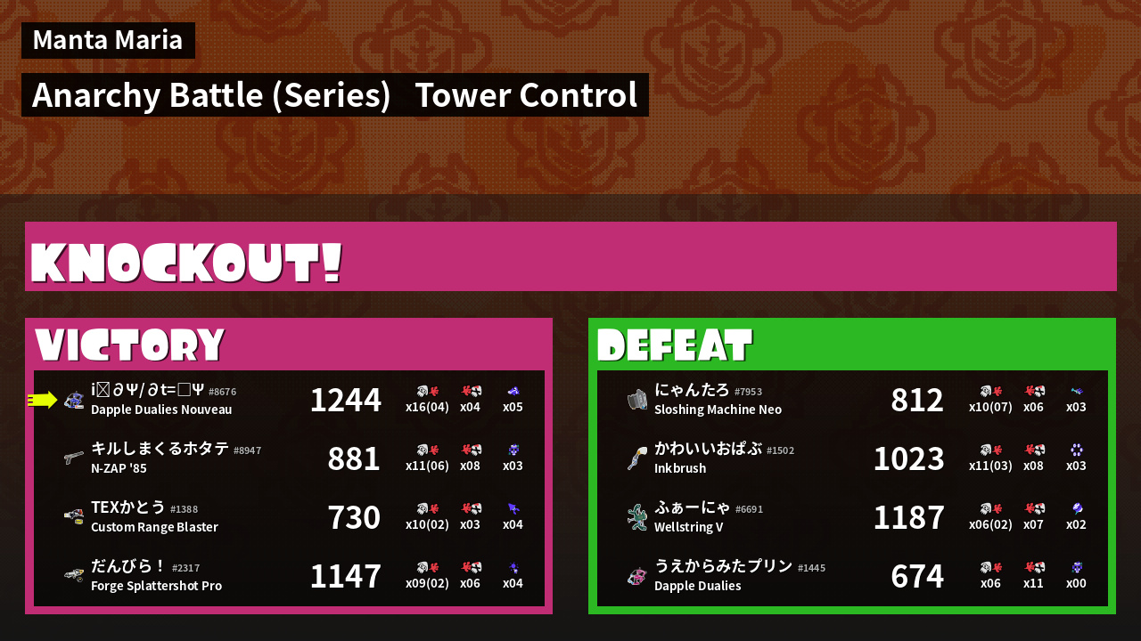 | Medals | #1 Overall Splatter #1 Turf Inker #1 Enemy Splatter | ||