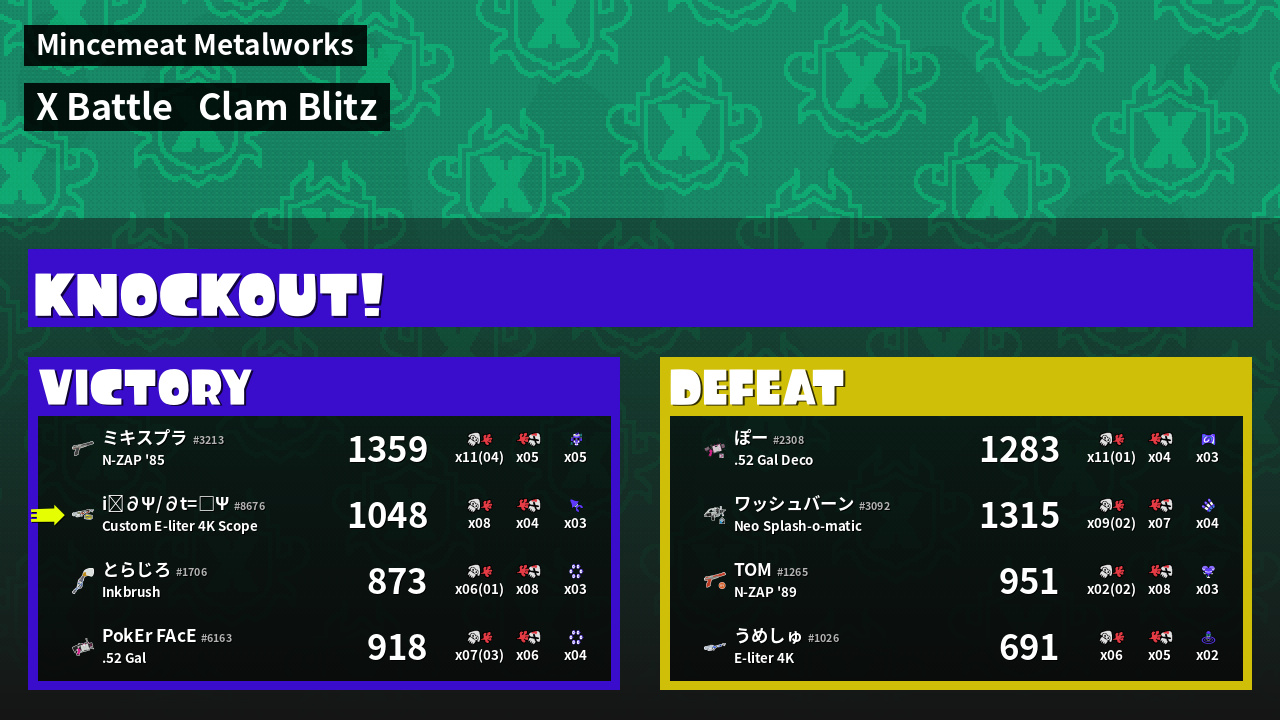| Medals | #1 Super Jump Spot #1 Enemy Splatter #1 Clam Stopper | ||