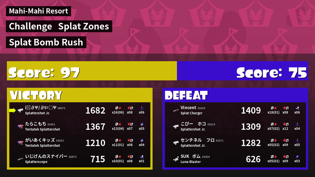 | Medals | #1 Overall Splatter #1 Splat Zone Inker #1 Splat Zone Guard | ||