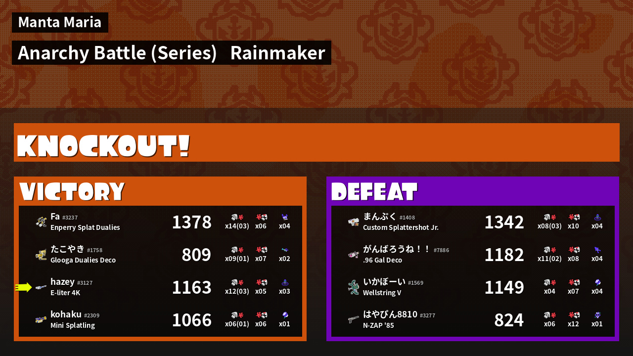 | Mode | Rainmaker - Anarchy Battle (Series) | ||
