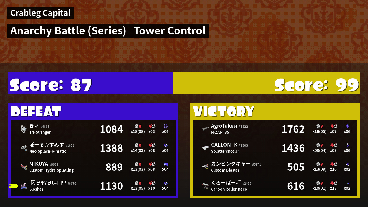 | Medals | #1 Damage Taker #1 Ink Consumer #1 Triple Inkstrike User | ||