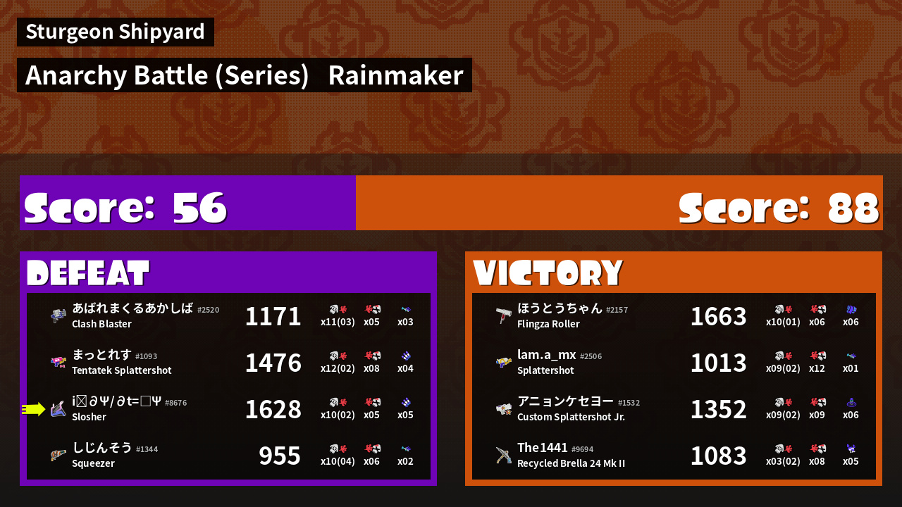 | Weapon | Slosher ( Splat Bomb / Triple Inkstrike) | ||