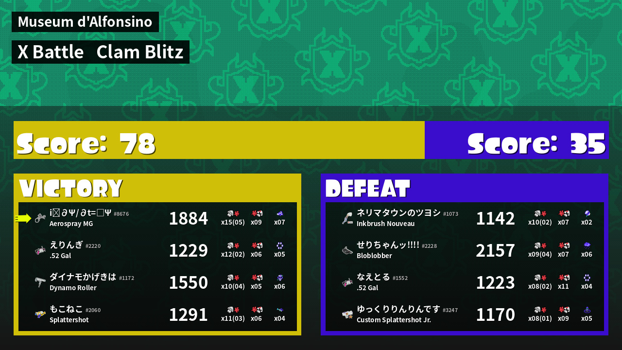 | Mode | Clam Blitz - X Battle | ||