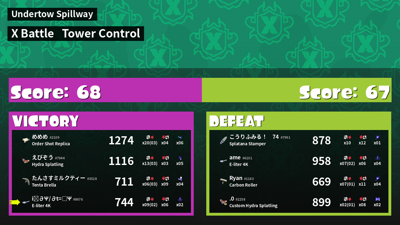 | Mode | Tower Control - X Battle | ||