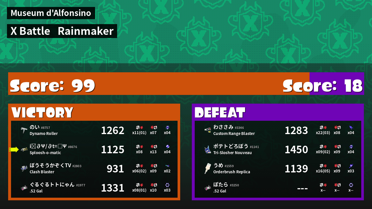 | Mode | Rainmaker - X Battle | ||