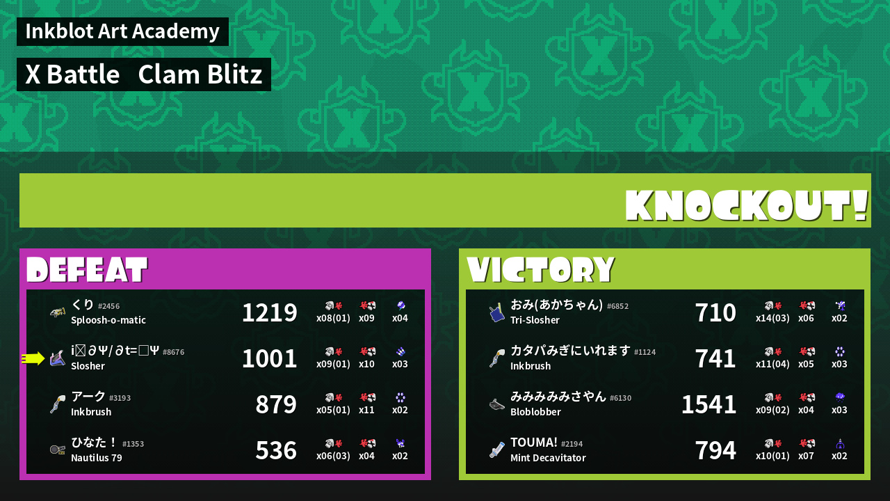 | Weapon | Slosher ( Splat Bomb / Triple Inkstrike) | ||