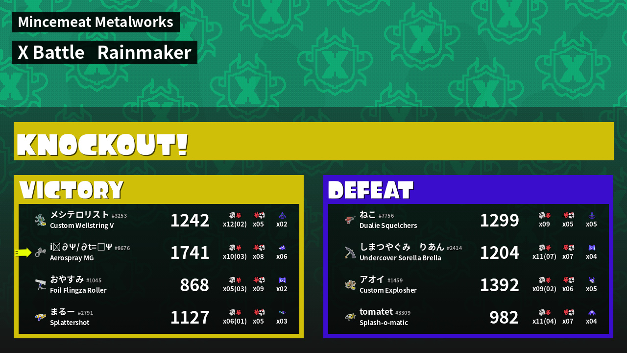 | Medals | #1 Turf Inker #1 Splat Assister #1 Ink Consumer | ||