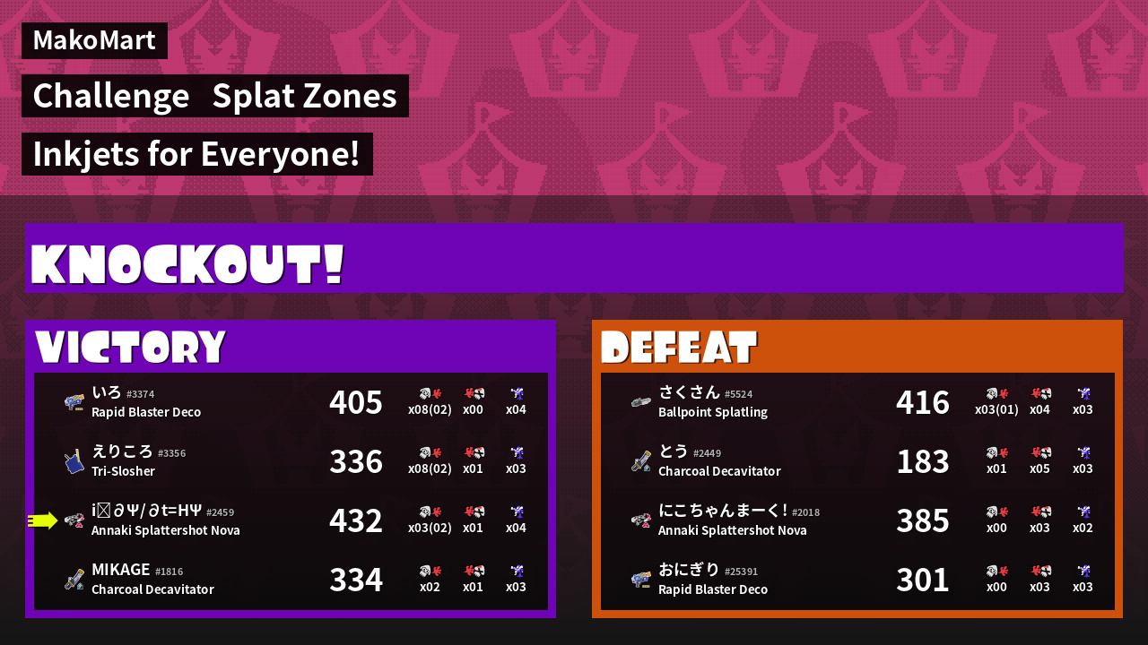 | Medals | #1 Splat Zone Inker #1 Turf Inker #1 Splat Assister | ||