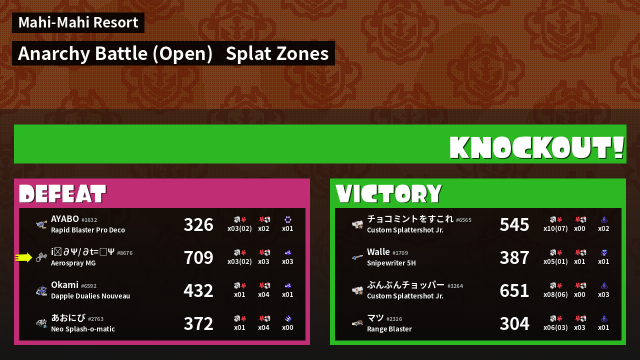 | Mode | Splat Zones - Anarchy Battle (Open) | ||