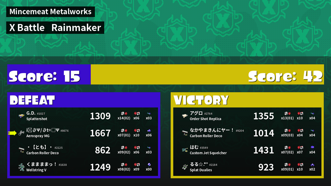| Weapon | Aerospray MG ( Fizzy Bomb / Reefslider) | ||