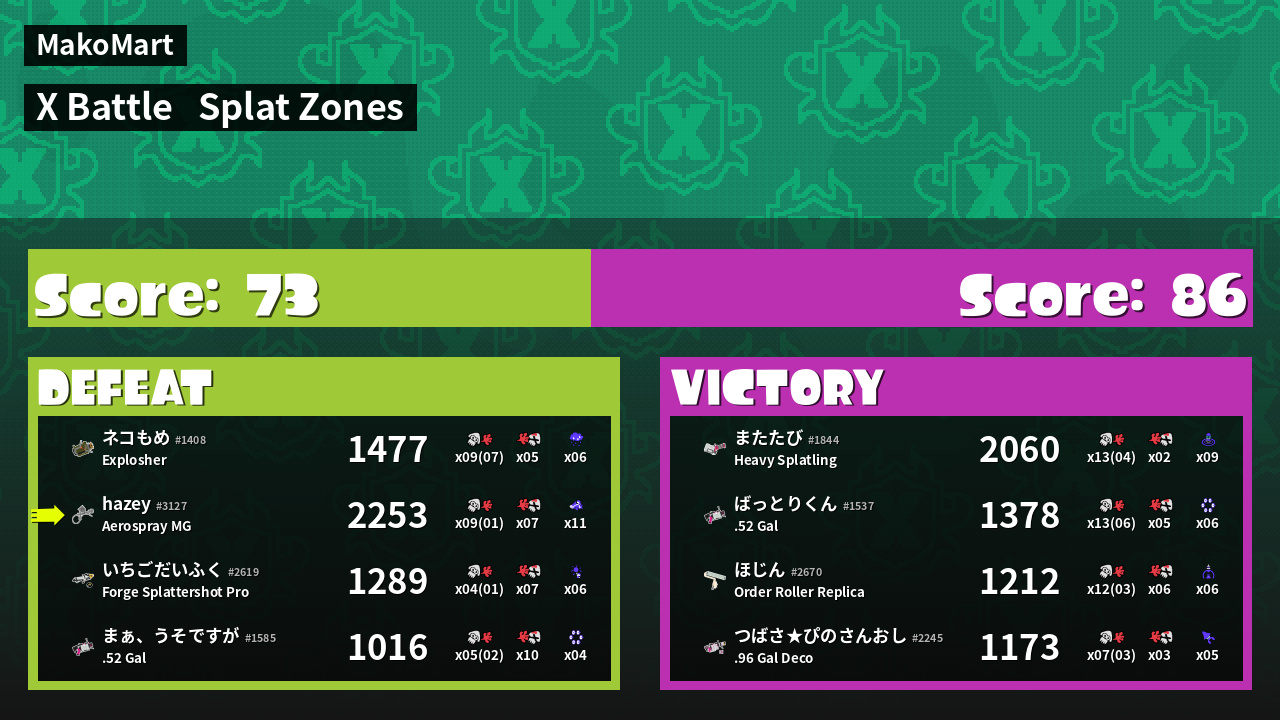 | Mode | Splat Zones - X Battle | ||