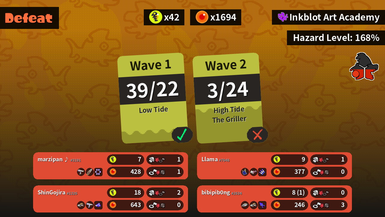 | Weapons | Splat Roller Grizzco Splatana | Grizzco Blaster Big Swig Roller | Tri-Slosher Heavy Splatling | Grizzco Brella Grizzco Blaster |