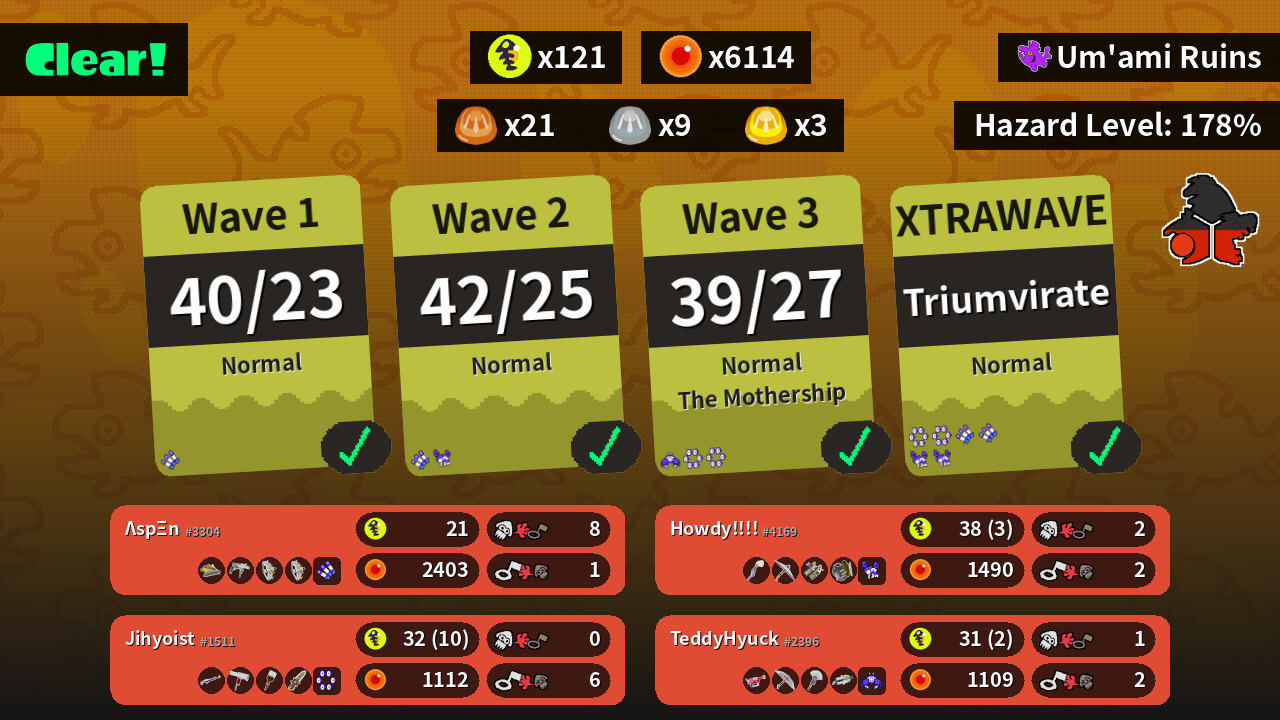 Boss Salmonid | 15 | 9 | 7 | 12 |