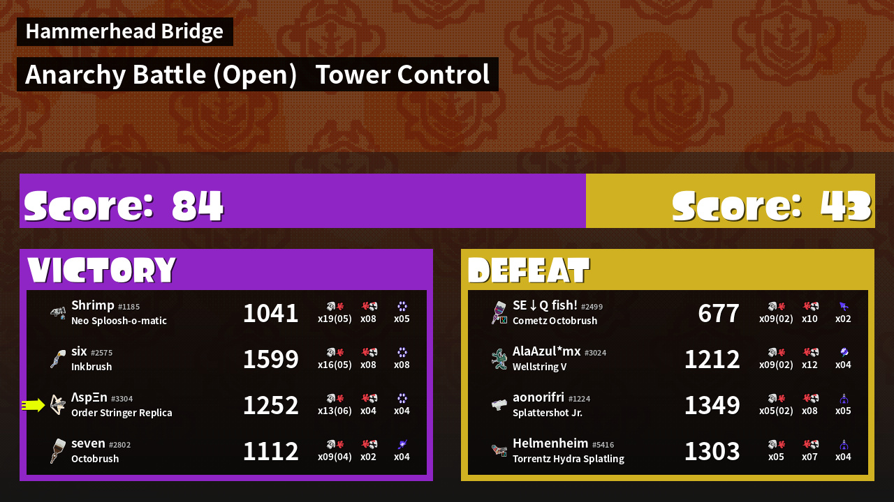 | Mode | Tower Control - Anarchy Battle (Open) | ||