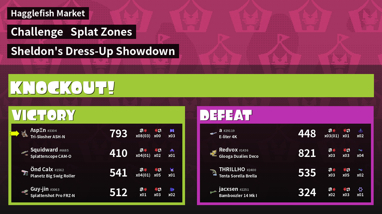 | Medals | #1 Overall Splatter #1 Splat Zone Inker #1 Splat Zone Guard | ||