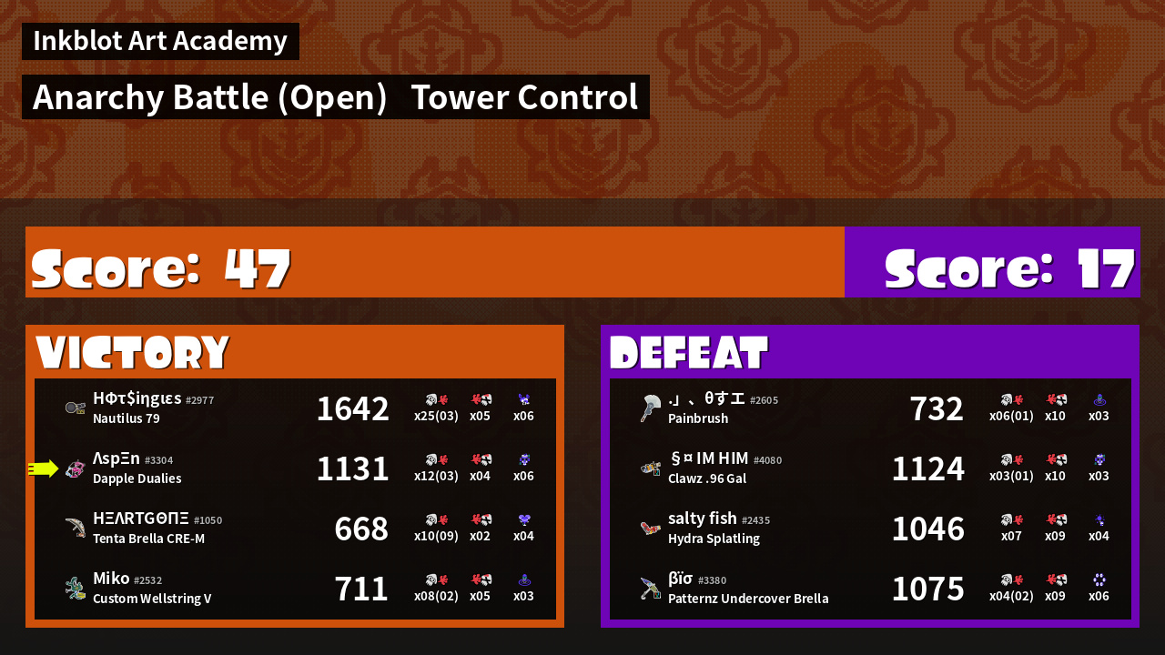 Name | Weapon | Inked | ![]() |