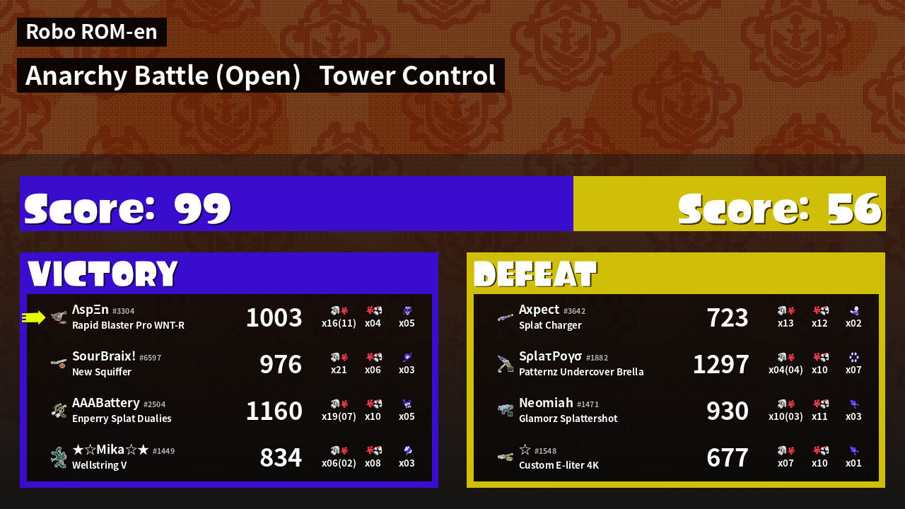 | Mode | Tower Control - Anarchy Battle (Open) | ||