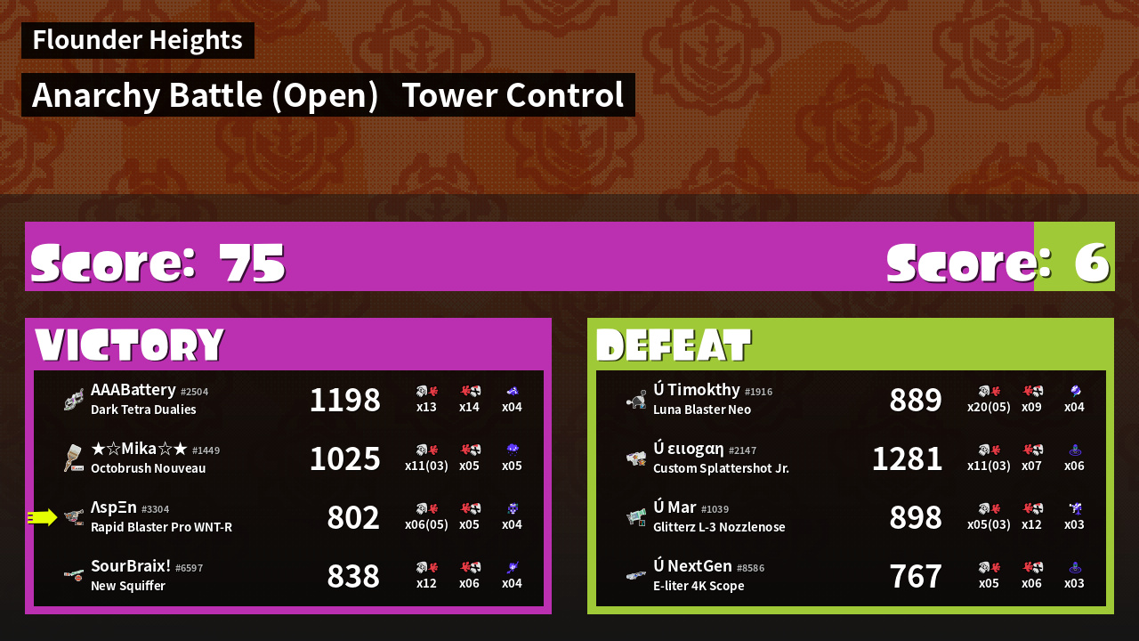 | Mode | Tower Control - Anarchy Battle (Open) | ||