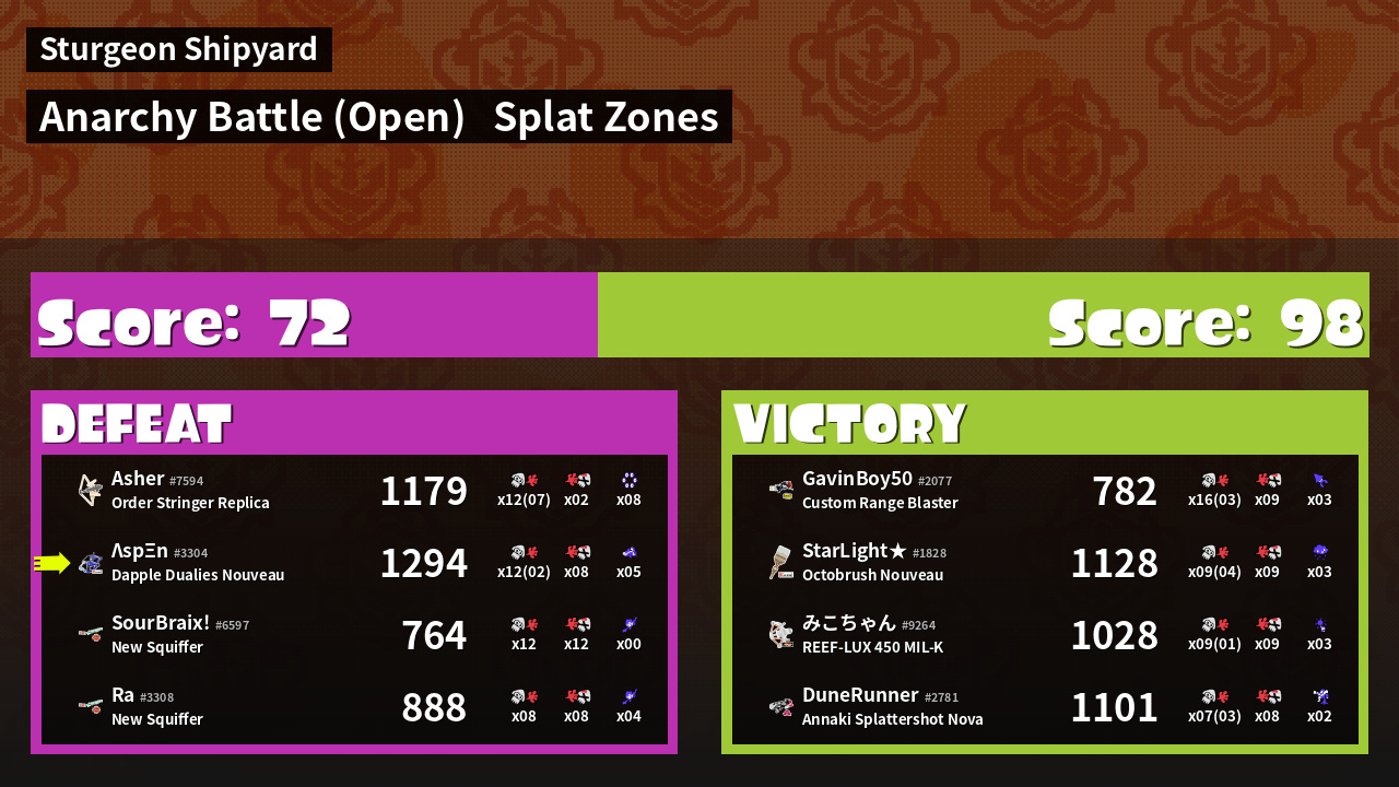 | Mode | Splat Zones - Anarchy Battle (Open) | ||