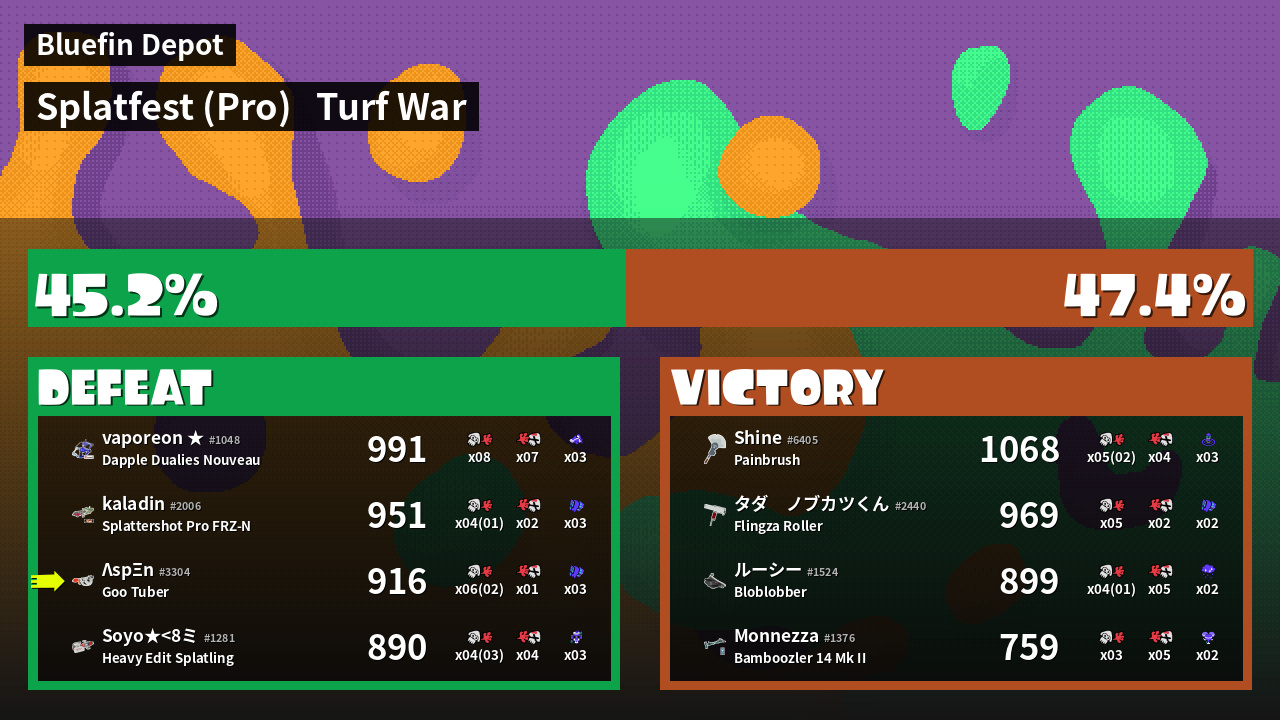 | Mode | Turf War - Splatfest (Pro) | ||