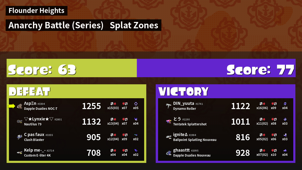 Results of hazymazy's Battle