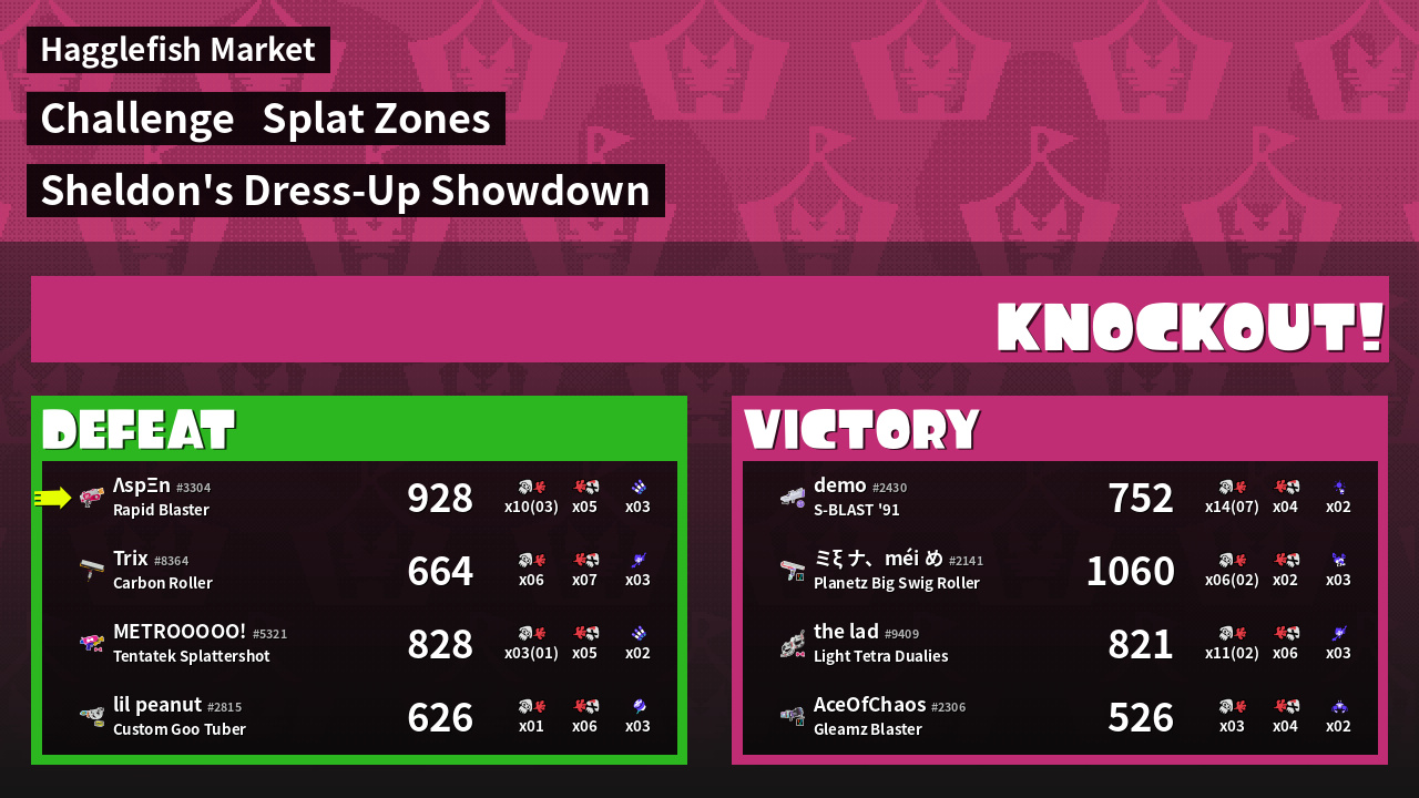 | Medals | #1 Overall Splatter #1 Splat Zone Guard #1 Turf Inker | ||