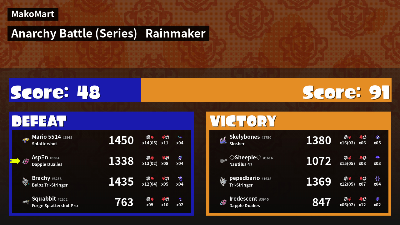 | Mode | Rainmaker - Anarchy Battle (Series) | ||