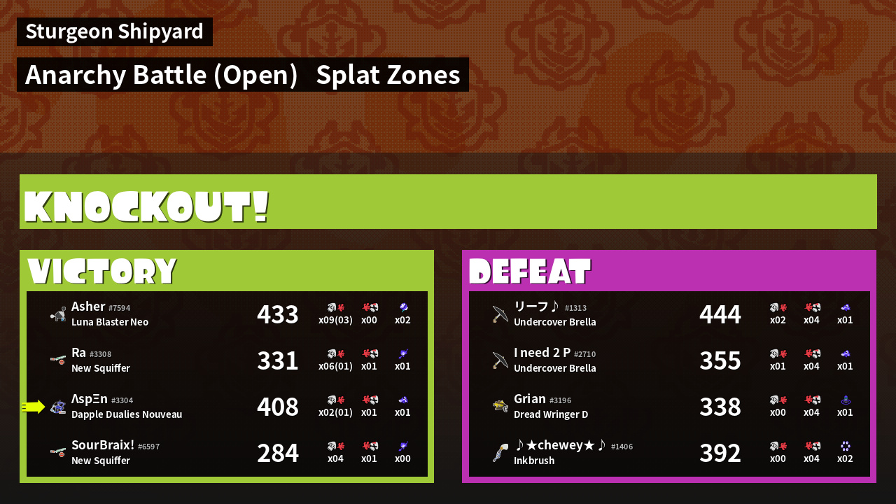| Mode | Splat Zones - Anarchy Battle (Open) | ||