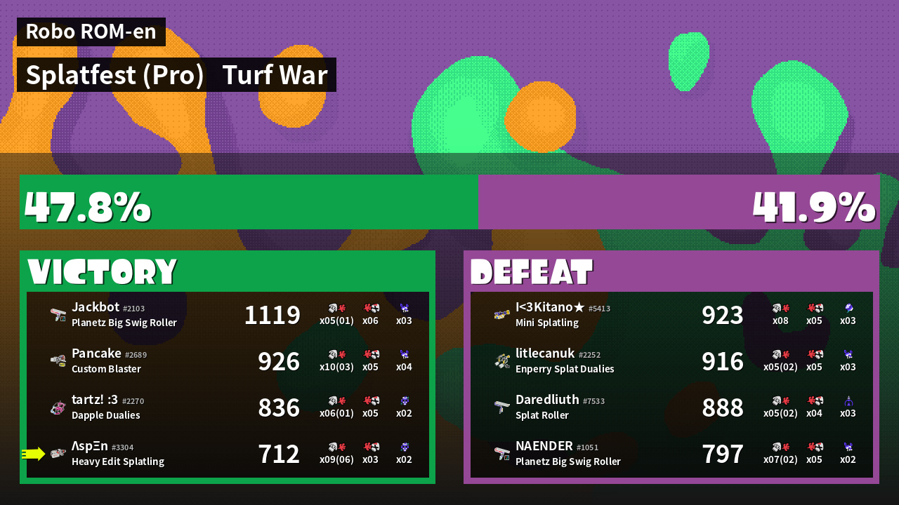 | Mode | Turf War - Splatfest (Pro) | ||