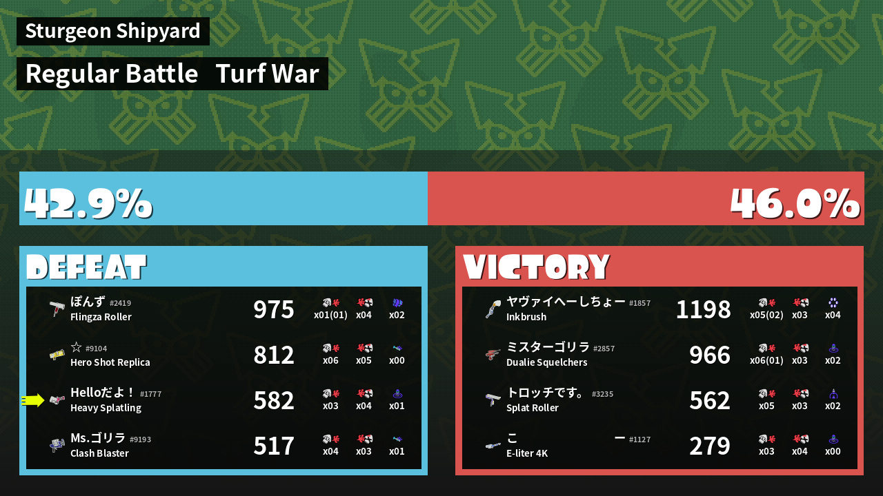| Mode | Turf War - Regular Battle | ||