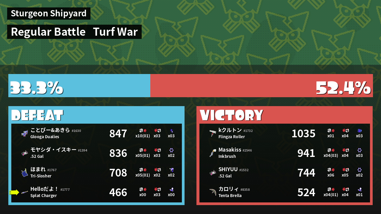 | Mode | Turf War - Regular Battle | ||