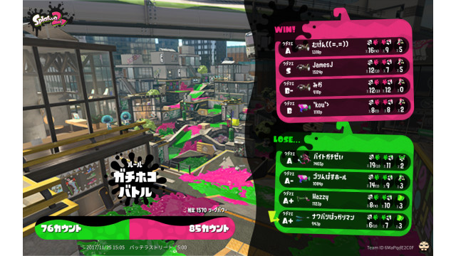 | Name | Weapon | Level | Rank | Inked | k+a/sp | k/d |