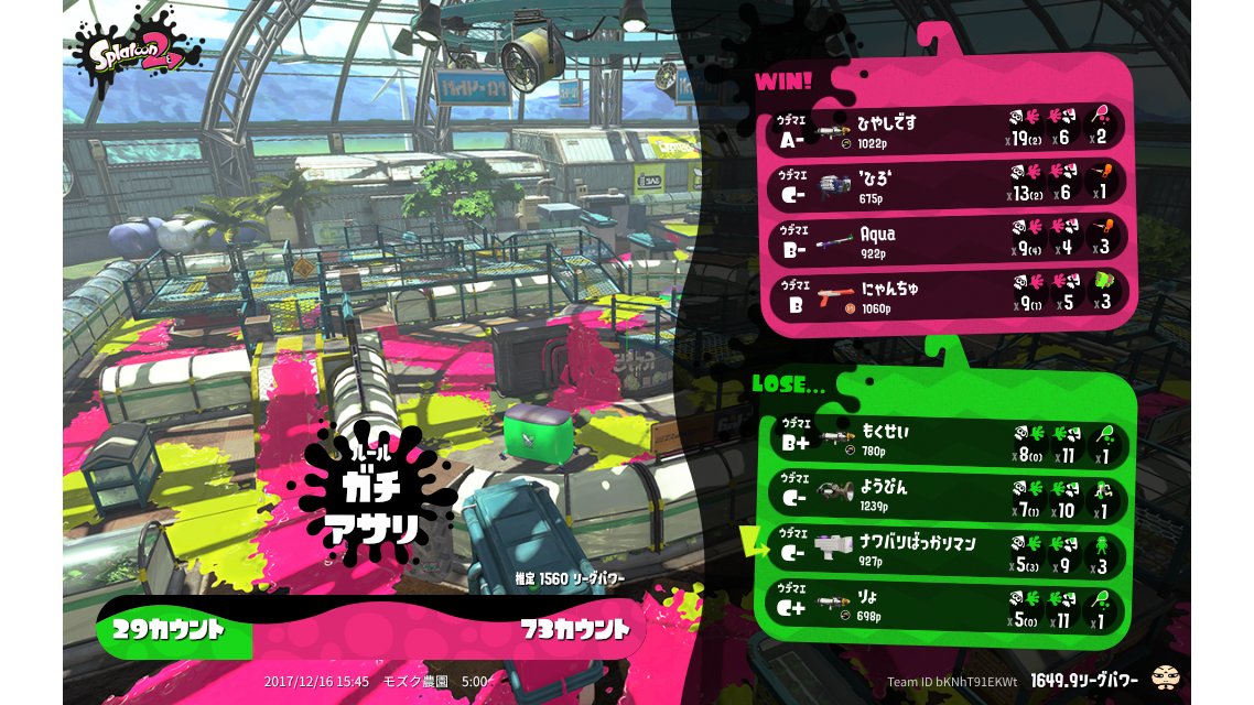 | Name | Weapon | Level | Rank | Inked | k+a/sp | k/d |