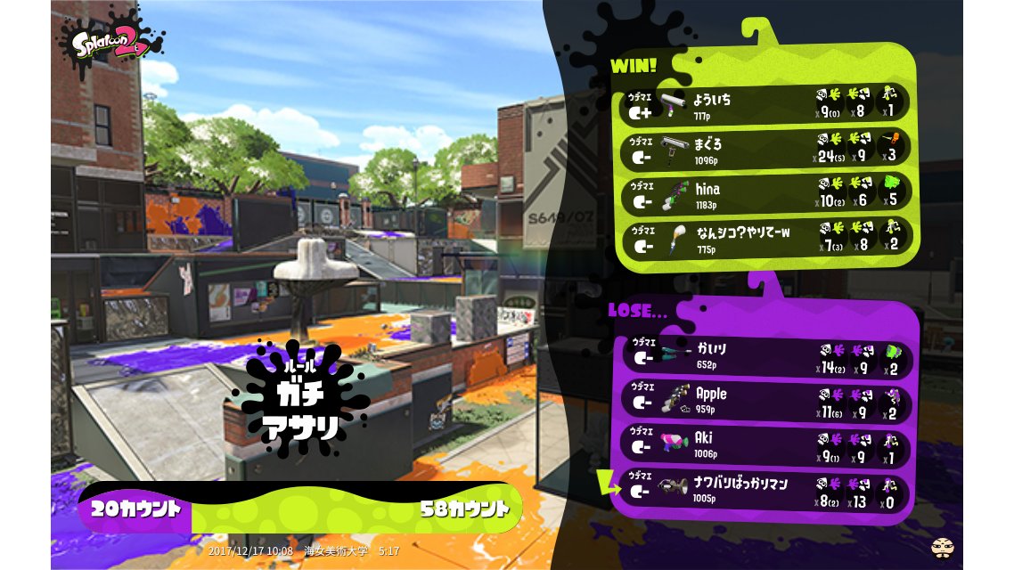 | Name | Weapon | Level | Rank | Inked | k+a/sp | k/d |