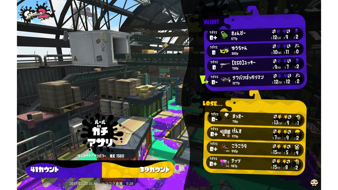 | Name | Weapon | Level | Rank | Inked | k+a/sp | k/d |