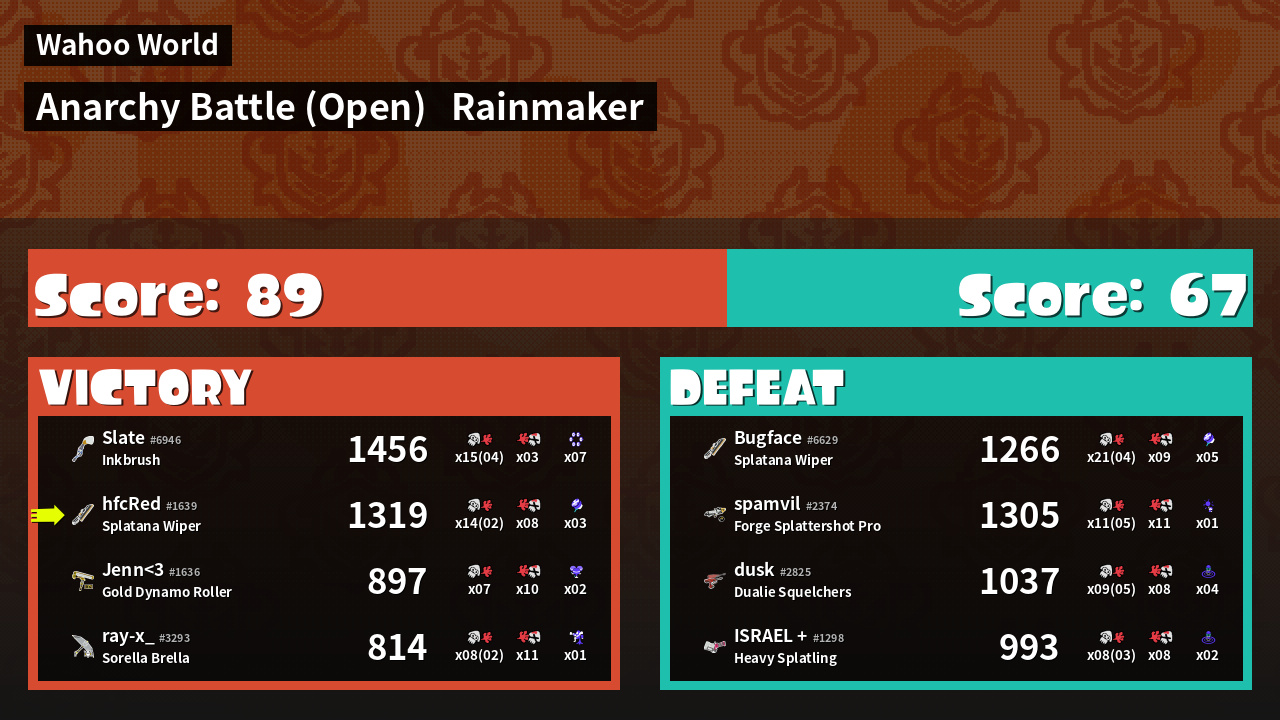 | Mode | Rainmaker - Anarchy Battle (Open) | ||