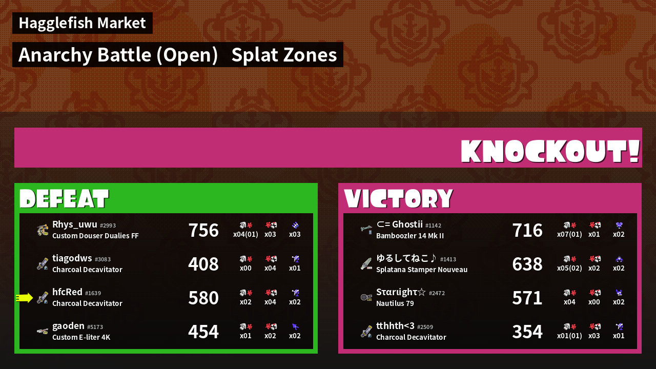 | Mode | Splat Zones - Anarchy Battle (Open) | ||
