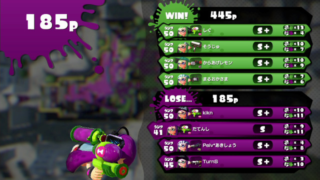 | Tentatek Splattershot | 50 | S+ | 10 / 11 < | 0.91 | 47.6% | |