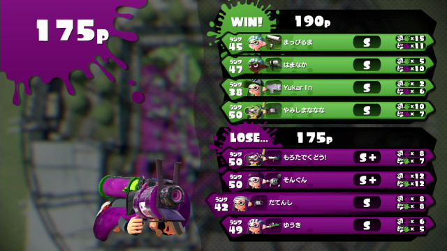 | Splattershot Pro | 50 | S+ | 8 / 7 > | 1.14 | 53.3% | |
