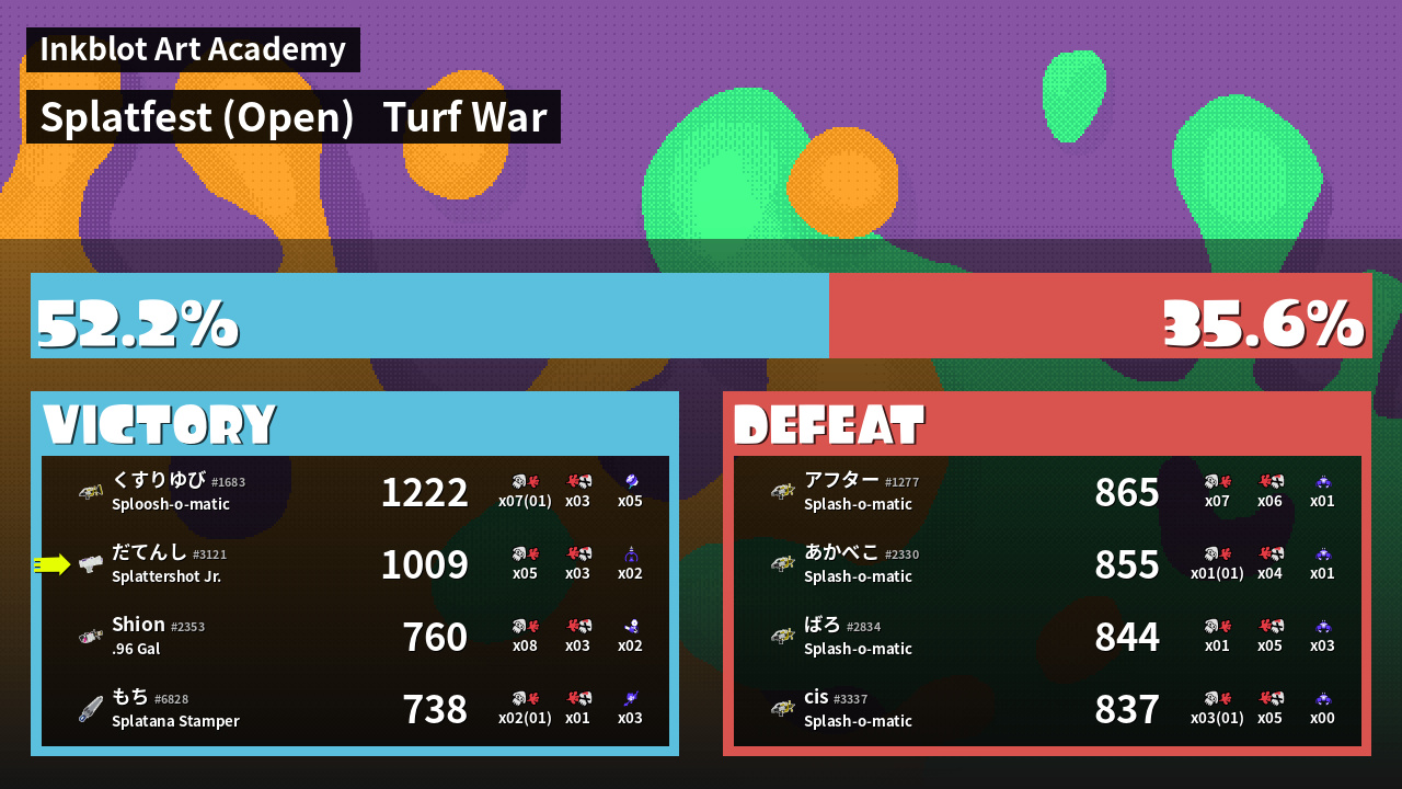 | Medals | #1 Enemy-Base Inker #1 Ink Consumer #2 Turf Inker | ||