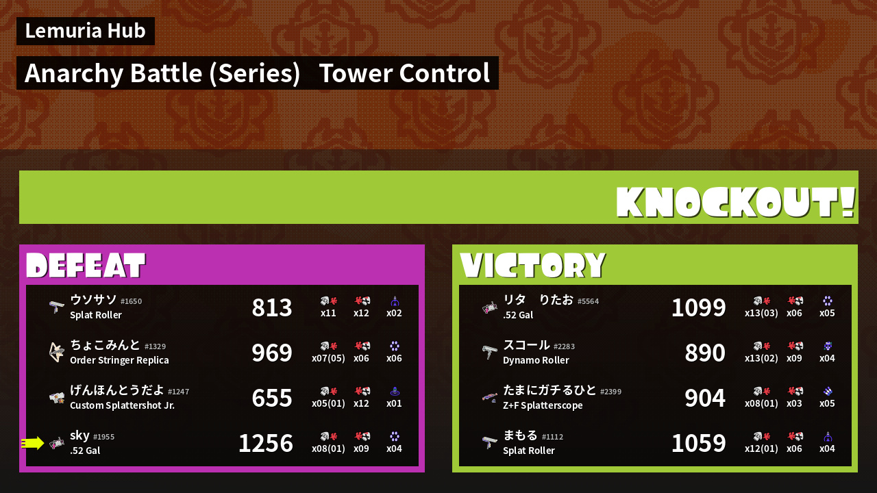 | Medals | #1 Turf Inker #1 Ground Traveler #2 Overall Splatter | ||