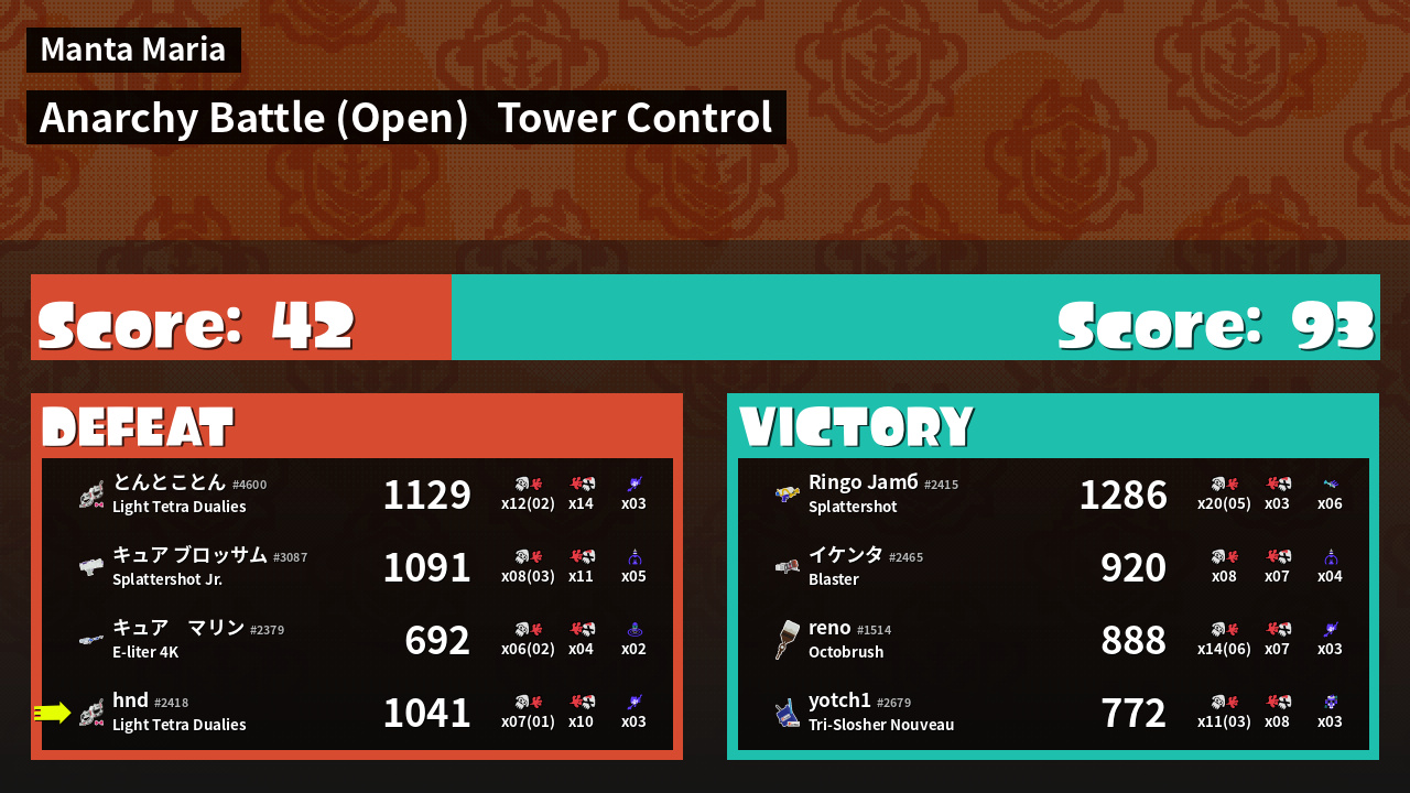 | Mode | Tower Control - Anarchy Battle (Open) | ||