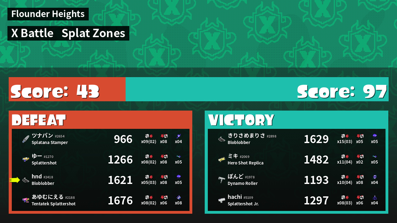 | Mode | Splat Zones - X Battle | ||