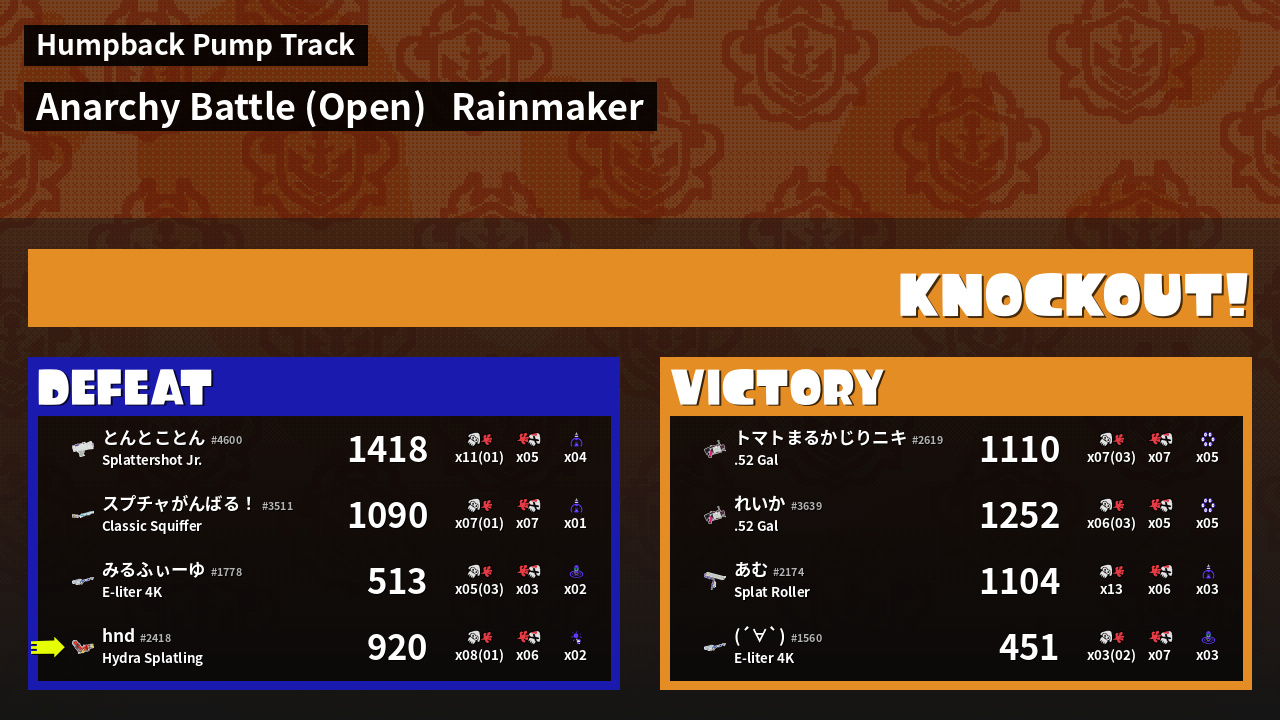 | Mode | Rainmaker - Anarchy Battle (Open) | ||