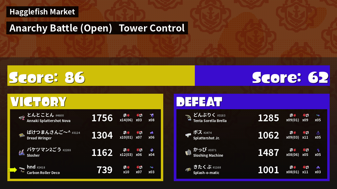| Mode | Tower Control - Anarchy Battle (Open) | ||