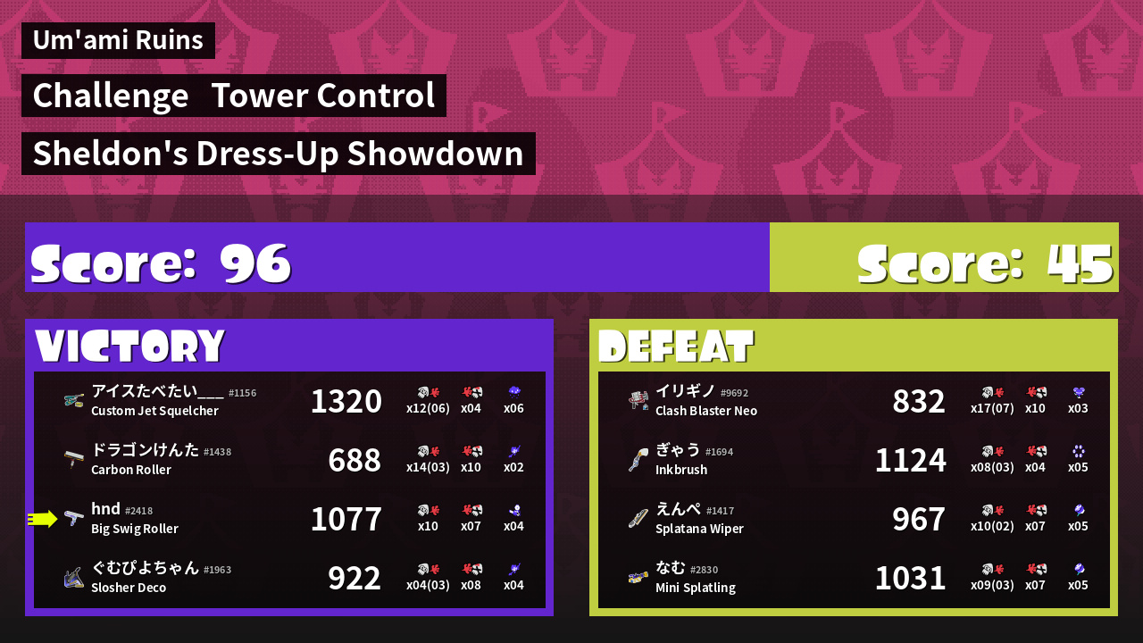 | Weapon | Big Swig Roller ( Splash Wall / Ink Vac) | ||