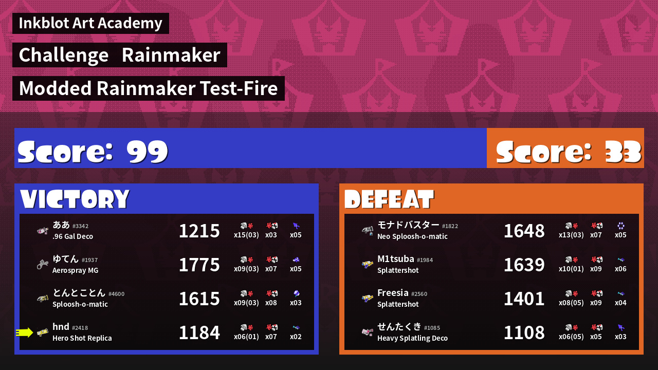 | Name | Weapon | Inked | k |