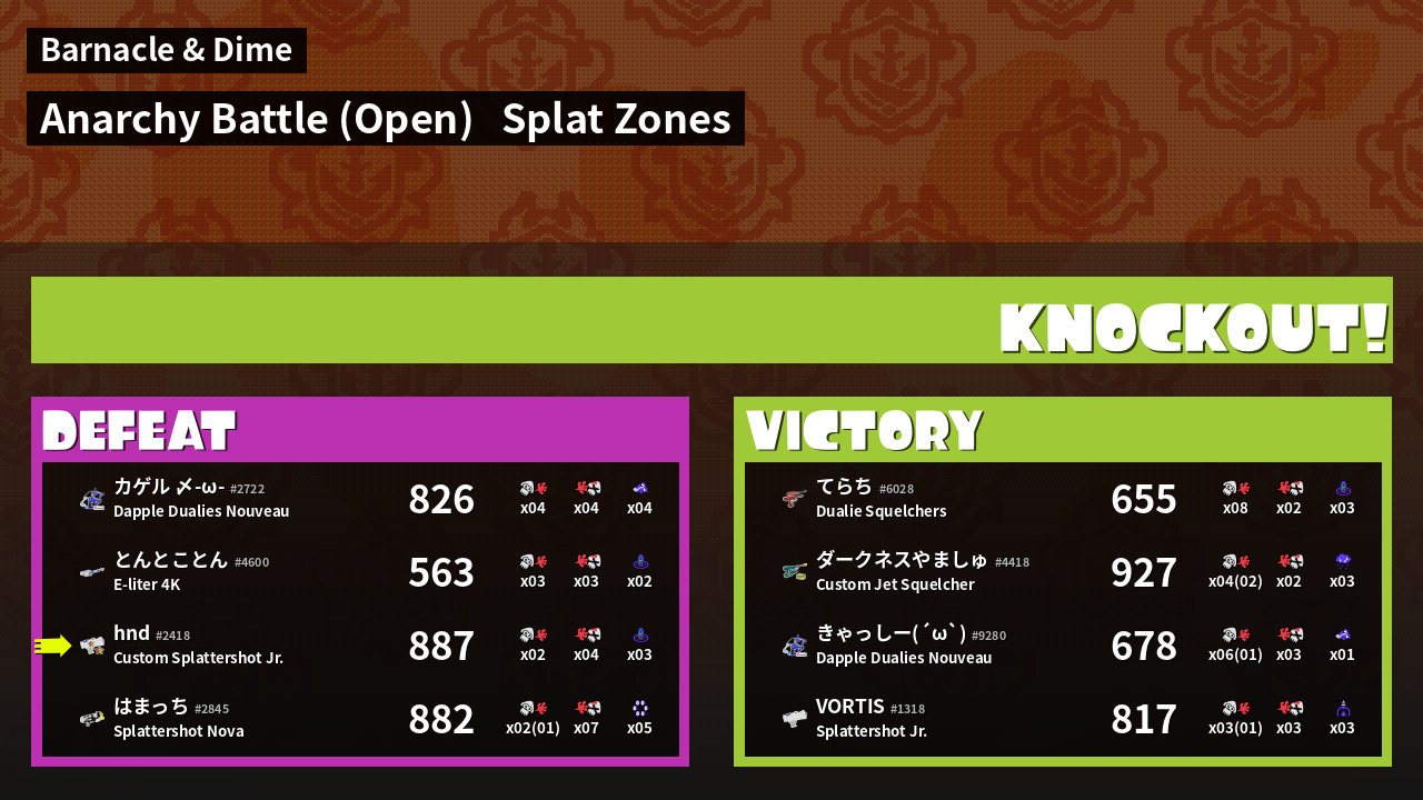 | Mode | Splat Zones - Anarchy Battle (Open) | ||
