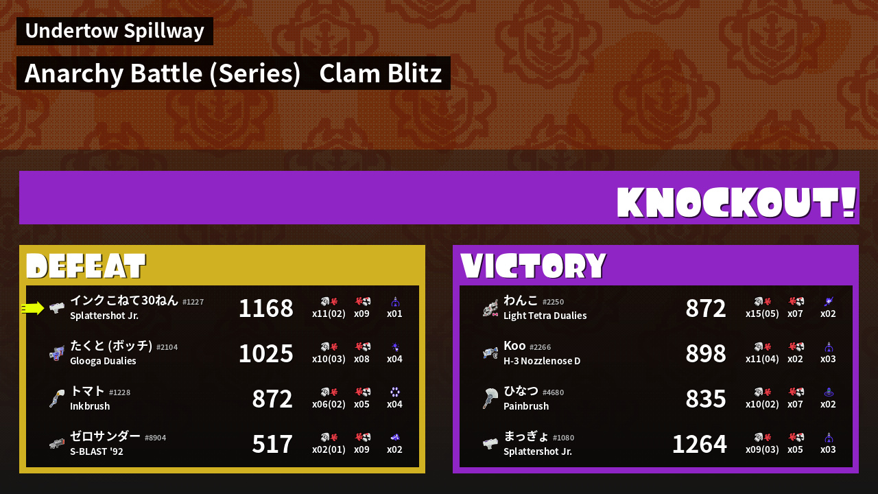 | Mode | Clam Blitz - Anarchy Battle (Series) | ||