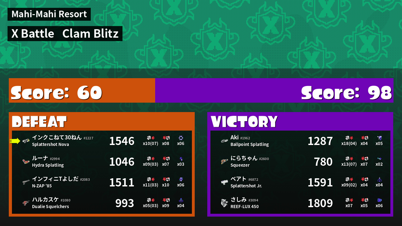 | Mode | Clam Blitz - X Battle | ||